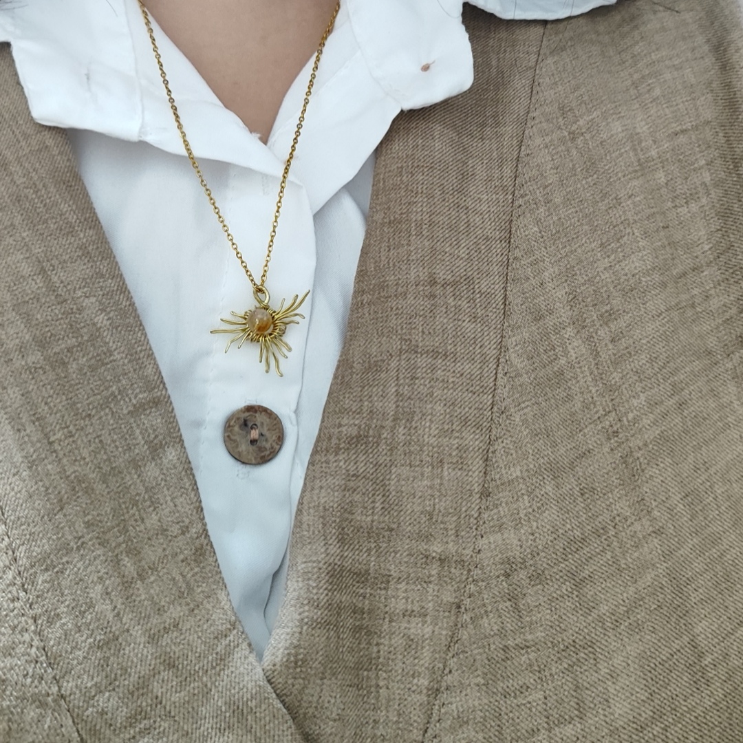 گردنبند مدل خورشید با سنگ طبیعی سیترین