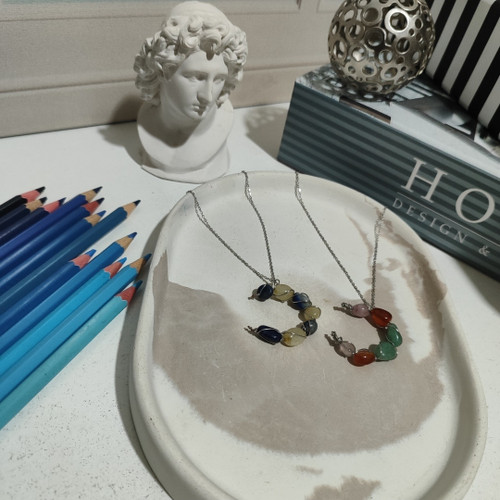 نیم ست گوشواره و گردنبند با سنگ طبیعی