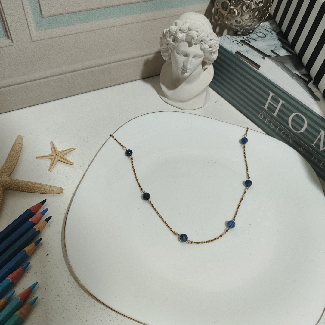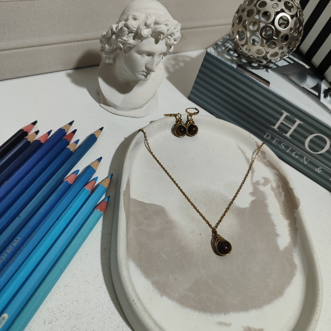 نیم ست گوشواره و گردنبند با سنگ طبیعی
