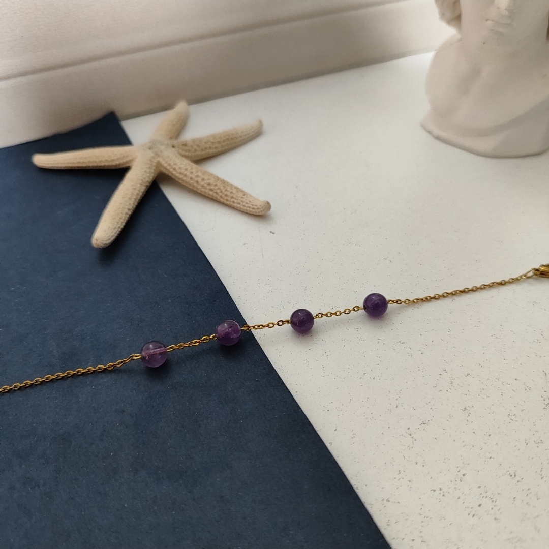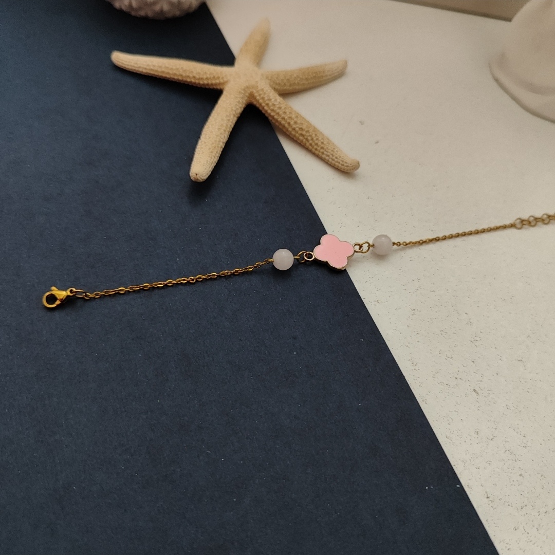 دستبند ونکلیف با سنگ طبیعی رز کوارتز
