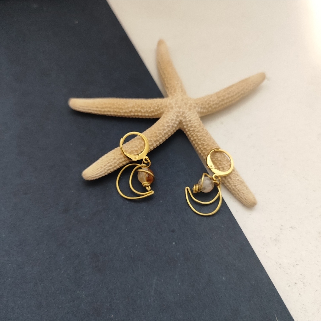 گوشواره مدل ماه و زحل_ سنگ طبیعی